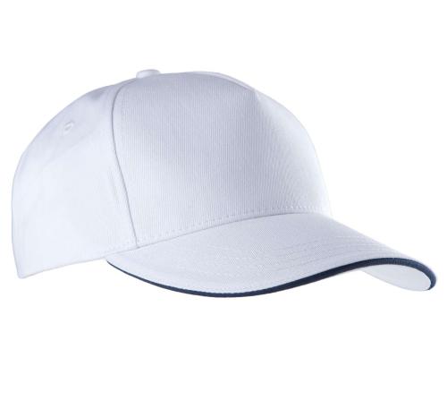 - 5 panels cap with contrast sandwich peak and cotton sweatband