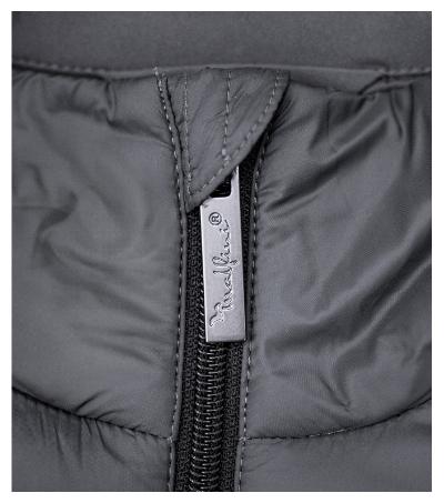 combination of quilted and softshell fabric, cut fitted by side parts, full-length coil zipper with chin protection, side pockets with coil zipper, inner breast zip pocket , curved and slightly prolonged back part, access for branding in back lining
