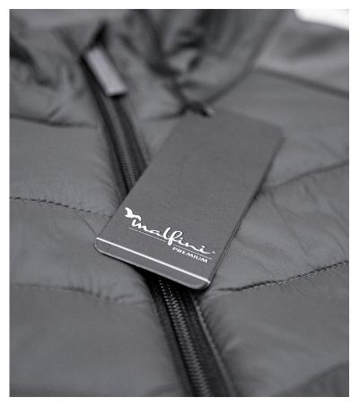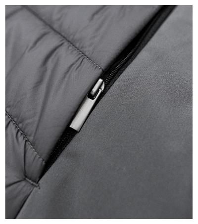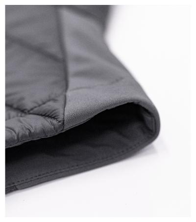 combination of quilted and softshell fabric, cut fitted by side parts, full-length coil zipper with chin protection, side pockets with coil zipper, inner breast zip pocket , curved and slightly prolonged back part, access for branding in back lining