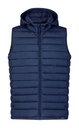 Wind and water resistant, zipped bodywarmer vest with zipped side pockets and adjustable hood. With RPET polyester pouch. 100% RPET polyester with distinctive RPET label.