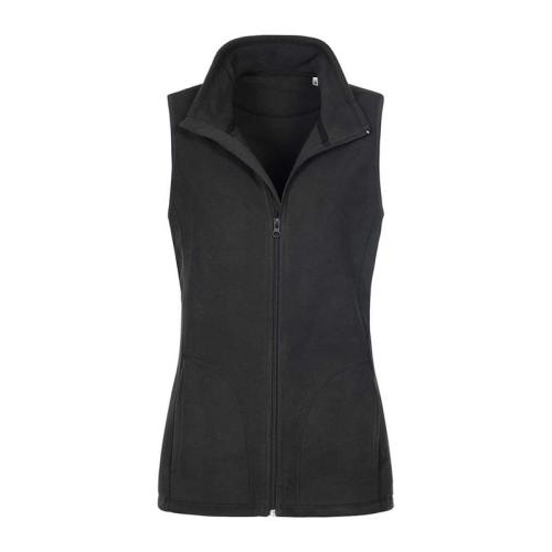 Lightweight and great heat-insulating properties, this women’s fleece vest with stand-up collar made of breathable micro fleece makes a warm and soft intermediate layer.