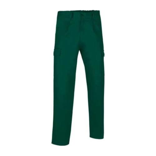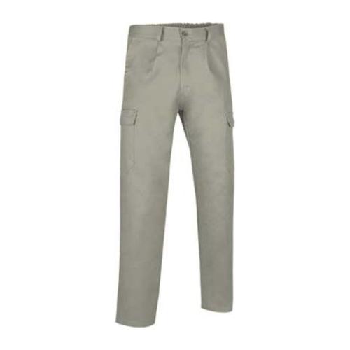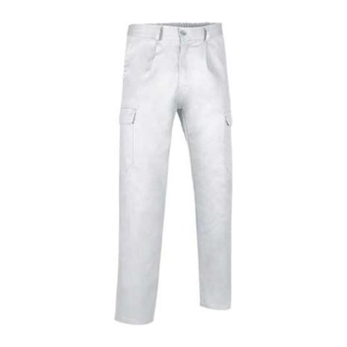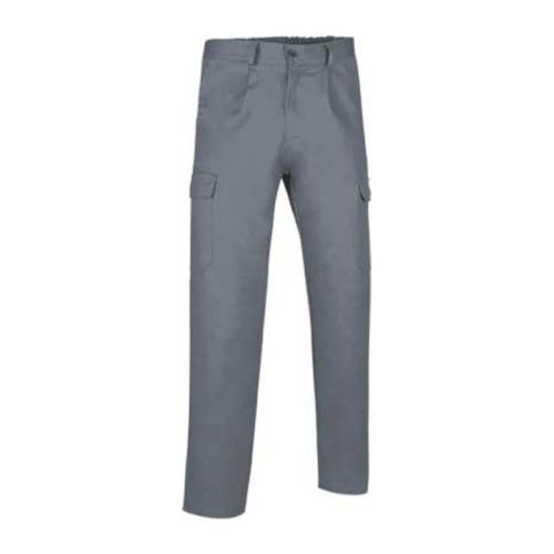 65% polyester, 35% cotton. 210 grs/m² twill fabric. Waist with elastic in back. 2 waist pockets. 2 lateral cargo pockets with velcro. 1 right back pocket. Button and zipper closure. 20 units per box: 1 size, 1 color. Individual bag.