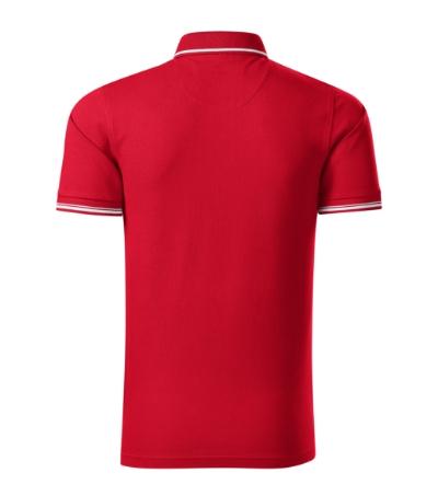 stretch fabric for better dimensional stability, slim fit cut with side seams, 1:1 rib knit collar and sleeve hems with a contrast stripe, placket with 3 buttons in the shell fabric colour, slits in side seams with a contrast tape, inner neckline with a contrast tape, fixing shoulder seams