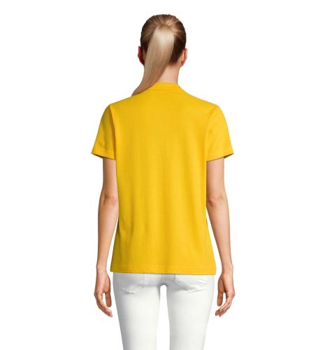 SOL'S PULSE WOMEN POLO, women's polo shirt, 100% ring-spun combed cotton, new fit, ribbed collar, neck tape, reinforced button placket, short sleeves, tone-on-tone 3-button placket, straight hem, cut and sewn, spare button on inside side seam. For size information, please refer to the size chart in the product documentation.