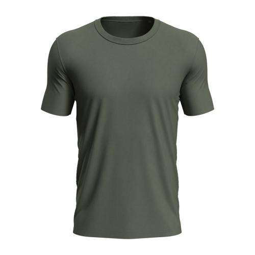 Fitted T-shirt for men features collar with rib binding and made of durable single jersey cotton.