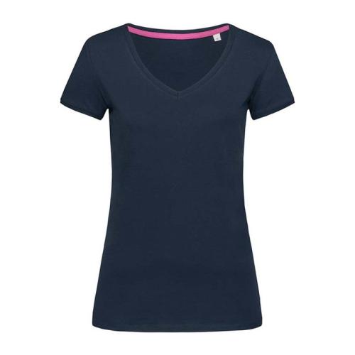 Modern T-shirt for women, with fashionable length and wide V-neck drop made of extra smooth combed ring-spun cotton.