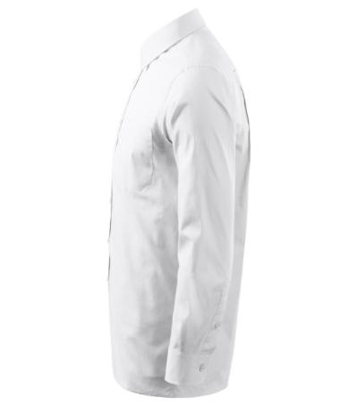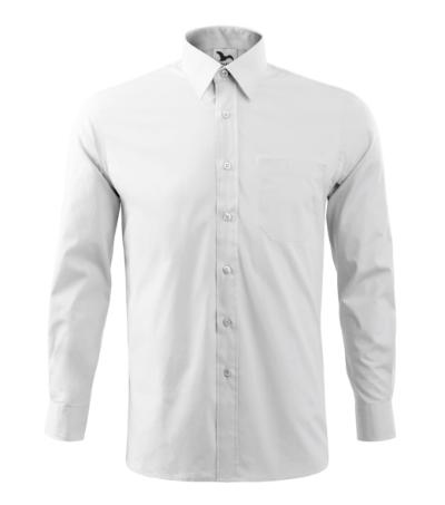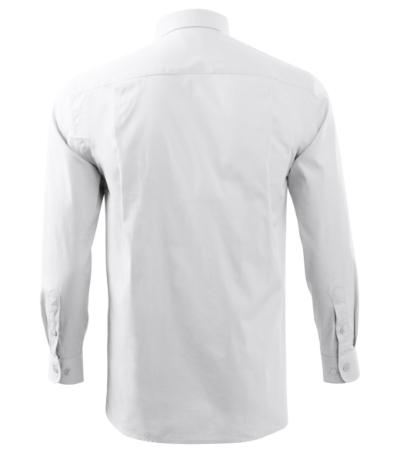 regular fit cut with side seams, back part with a double yoke and folds, two-piece shirt collar, front parts finished by placket, patch breast pocket, long sleeves with round cuffs and 1 button, buttons in the shell fabric colour (2 spare extra)