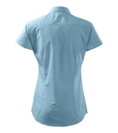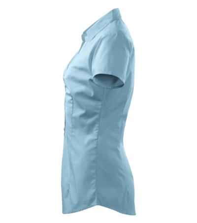 back part with a single yoke and darts, waist darts, breast decorated with tucks, two-piece open-neck shirt collar, front parts finished by placket, buttons in the shell fabric colour (1 spare extra), curved bottom edge