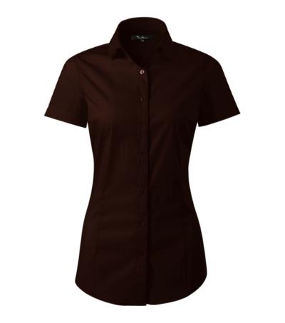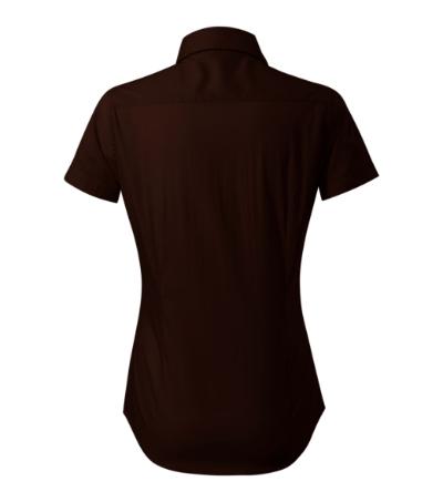 tailored fit cut with side seams, back part with a double yoke, breast and waist darts, two-piece shirt collar, front parts finished by placket, pearl buttons in the shell fabric colour (1 spare extra), curved bottom edge