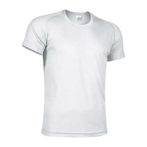 100% polyester sport t-shirt. 150 g/m² breathable technical fabric. Crew neck. Split short raglan sleeves. Double stitching on neck, bottom and sleeves. 100 units per box. 10 units per package: 1 size, 1 color.