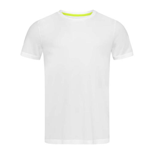 Modern and stretchy sports T-shirt for men made of quick-drying, breathable mesh-material. Contrast neck tape, decorative flatlock seams and excellent freedom of movement.