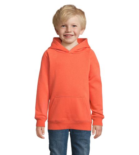 SOL'S STELLAR KIDS, KIDS' HOODED SWEATSHIRT, 80% organically grown cotton - 20% recycled polyester, 3 yarns , Brushed lining , Outside: 100% organic cotton FLEECE 280, Cut and sewn, Raglan sleeves, 2x2 ribbed cuffs and hem, Half moon inside collar, Neck tape, Jersey lined hood. About sizes matching, please refer to the size chart in the product documentation section.
