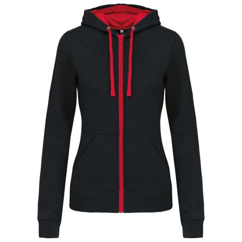 LADIES’ CONTRAST HOODED FULL ZIP SWEATSHIRT