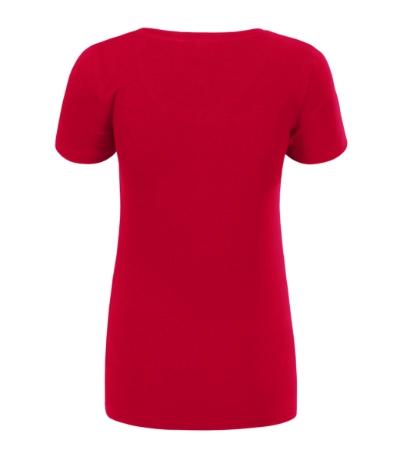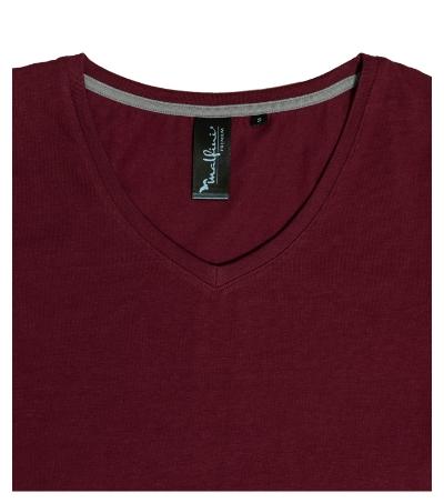 stretch fabric for better dimensional stability, slim fit cut with side seams, deeper V-neckline, narrow 1:1 rib knit neckline hem with 5 % elastane, inner back neckline with a contrast tape, fixing shoulder seams, short fitting sleeves