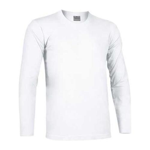 100% ring spun cotton. 165 grs/m2 single jersey. Ribbed round neck. Long sleeves without cuffs. Shoulder to shoulder reinforcement. Double stitching on neck, bottom and sleeves. 50 units per box. 5 units per package: 1 size, 1 color.