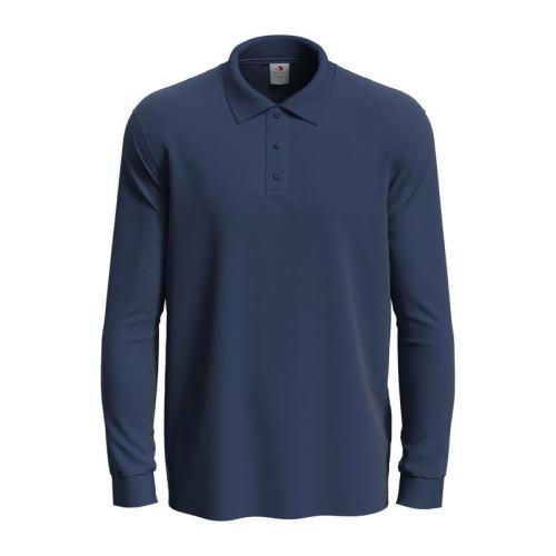 Soft single jersey long sleeve polo shirt for men, with a pleasing piqué look, rib collar, cuffs on sleeves and 3 tone-on-tone buttons.