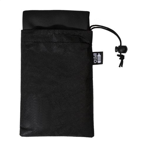 RPET microfibre sport towel in RPET non-woven carry pouch with distinctive RPET label. RPET polyester, 140 g/m².