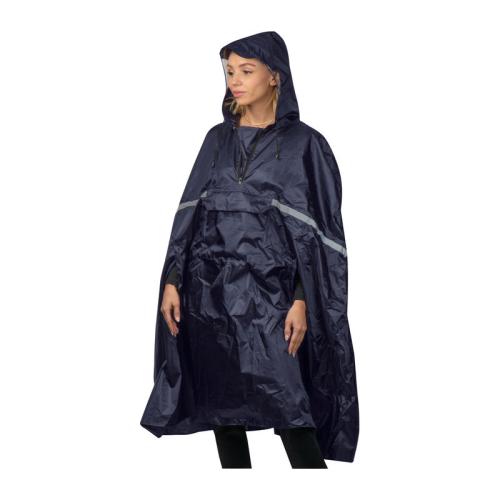 Foldable rain poncho with reflective stripe and a drawstring for the hood, which can be folded into a fanny pack. Perfect for stowing away, this poncho should always be with you.