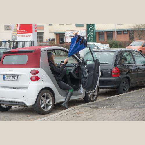 This umbrella is different, that is for sure, and so will be your promotion, it is also easier to get into your car on a rainy day!