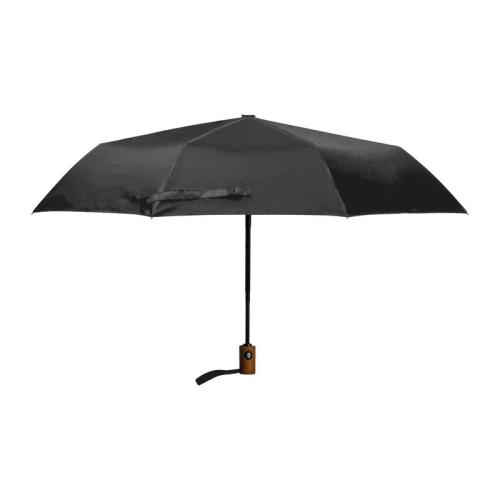 Automatic pocket umbrella with fibreglass frame, cover made of recycled PET bottles, wooden handle and wrist strap.