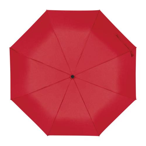 Automatic pocket umbrella with fibreglass frame, cover made of recycled PET bottles, wooden handle and wrist strap.