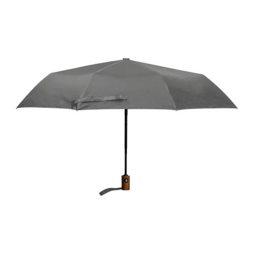 Automatic pocket umbrella with fibreglass frame, cover made of recycled PET bottles, wooden handle and wrist strap.