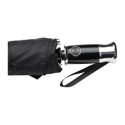 High-quality pocket umbrella made of 190T pongee with black fibreglass shaft, elegant handle and matching case. Automatic opening and closing by pressing the button on the handle.