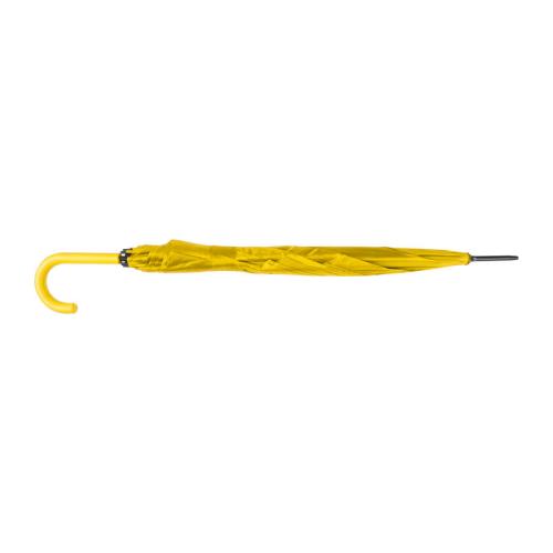 Automatic umbrella with curved plastic handle and metal tops, in various strong and subtle colours.
