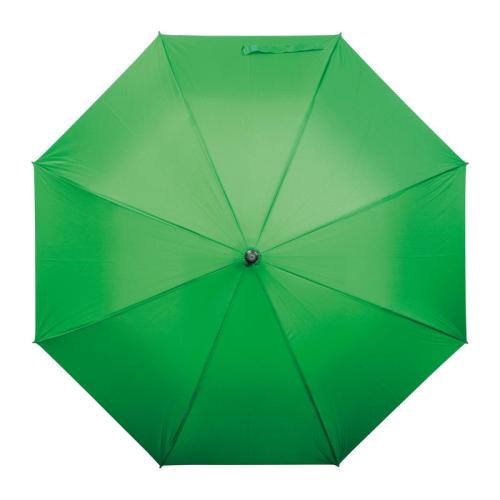 Classic umbrella with integrated ring handle, automatic opening, and fiberglass frame and ribs. The canopy is made of 190T pongee material.