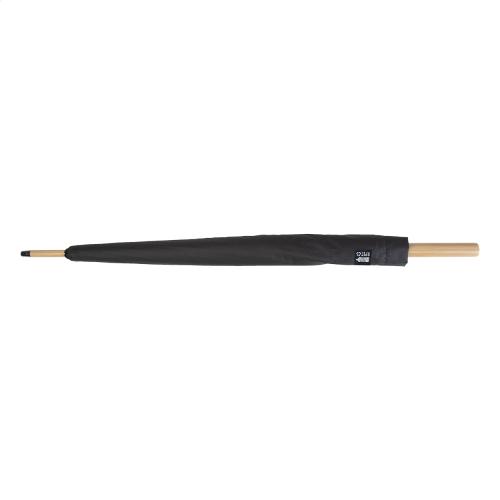 Manual, windproof umbrella with 16 panels, bamboo handle and shaft, fibreglass frame and ribs. In matching colour pouch. 190T RPET pongee. With distinctive RPET label.