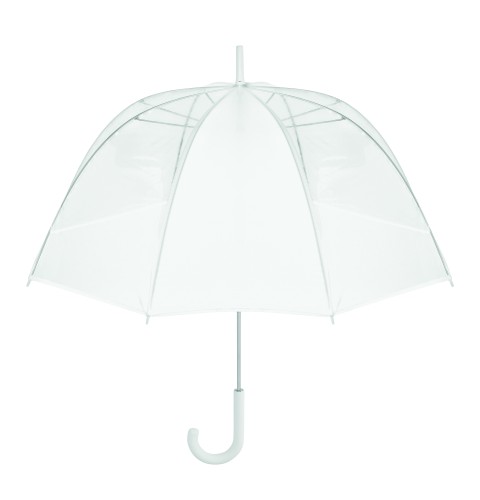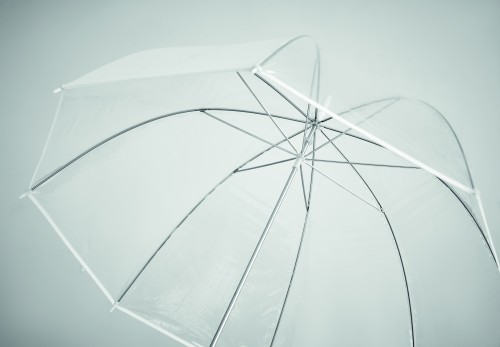 23 inch straight umbrella in POE with piping and 1 panel in polyester for printing area. Manual open. Fiberglass, ribs and frame. Chrome plated shaft with plastic tips. Rubber finished handle.