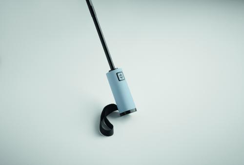 23-inch 3-fold reverse windproof umbrella made of 190T RPET pongee and matching pouch. Auto open and close, full black plating frame, fibreglass ribs, and a rubber-finished ABS handle.