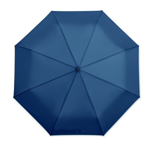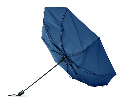 27 inch 3 fold auto open/close windproof umbrella. 190T pongee material black plated steel shaft. Fibreglass ribs, 1 part black plating inside frame. Black PP handle with button. With matching pouch.