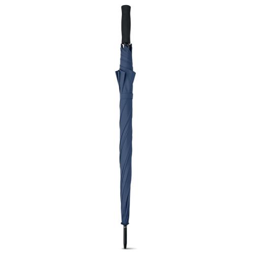 27 inch auto open umbrella in 190T pongee with black plated metal shaft and ribs. Black plastic tips. Straight black EVA handle. Manual closure.