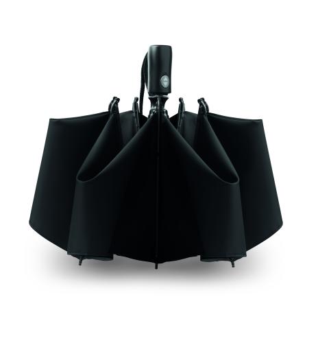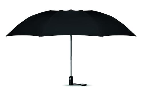 23 inch 3 fold auto open/close reversible umbrella in 190T pongee material chrome plating steel shaft. Fibre-glass rib and 1 part black plating inside frame. Black ABS handle with button. Includes matching pouch.