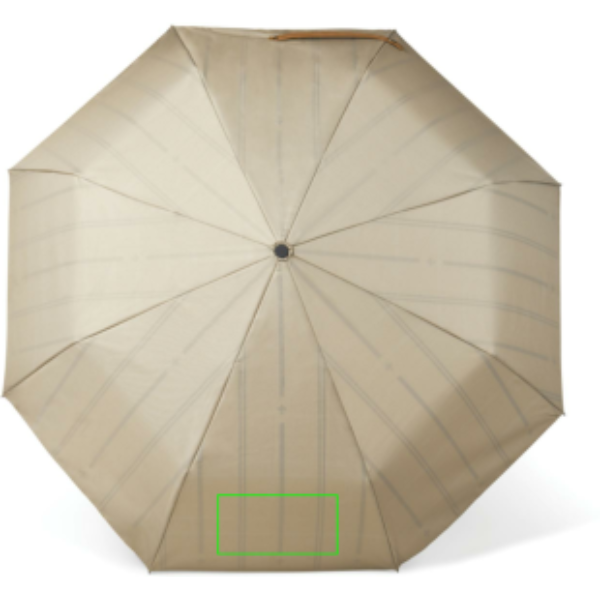 Stay dry in style on the go with our classic and understated 21-inch umbrella. The double-layer 190T recycled pet fabric provides ample protection against rain, while the beautiful inside lining adds a touch of elegance to the design. The umbrella features fibreglass ribs and frame, ensuring durability and longevity. The umbrella handle is made from composite wood, adding a touch of sophistication to the design. The umbrella also features an auto-opener for convenience and a manual closing option. The storing pouch in matching fabric adds an extra layer of protection when not in use. Features AWARE™ tracer technology, validating the genuine use of recycled materials, emphasising our commitment to responsible sourcing. Including FSC®-certified kraft packaging.