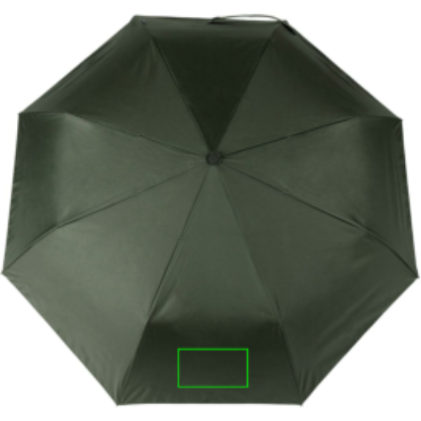 This stylish and modern 21-inch umbrella will keep you dry even on the rainiest of days. The compact size makes it the perfect confidant for life on the go. Crafted from premium 190T pongee RPET fabric, it provides excellent rain protection whilst it boasts a sleek design. Designed with a metal shaft and full fiberglass frame, this umbrella ensures strength and durability for challenging weather. The minimalist ABS plastic handle, with a comfortable rubber finish, adds contemporary flair and a secure grip. Featuring an auto-open/manual-close system for ease of use. The storage pouch in the classic Baltimore PU fabric provides additional protection when not in use. Stormproof. With AWARE™ tracer technology, this umbrella confirms the genuine use of recycled materials, underscoring our commitment to responsible sourcing.