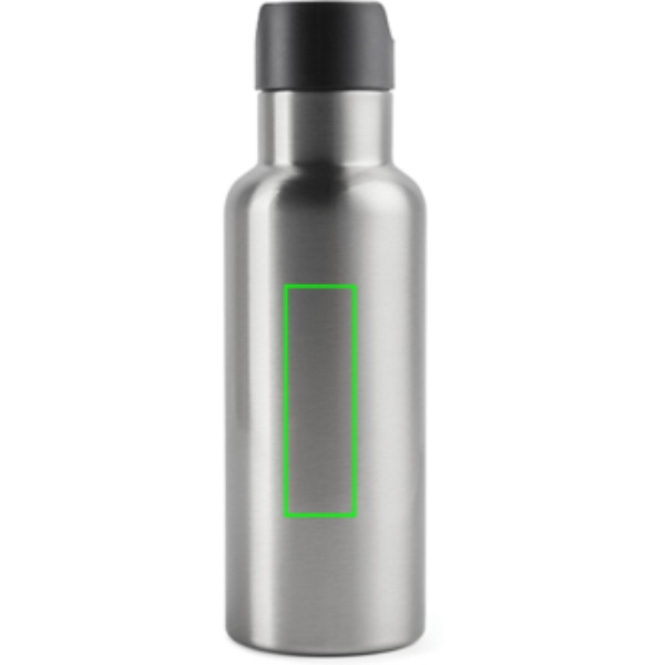 Practical and stylish water bottle with a tough, double wall. Vacuum sealed to keep drinks hot for up to 6 hours and cold for up to 12 hours. Enjoy your favourite cold drink while you're out and about or bring a warming cup of tea or coffee on your morning commute. Push-mug function. 500ml.