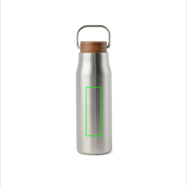 Ciro RCS recycled vacuum bottle is an elegant and functionally designed thermos bottle. The bottle has a lid of acacia wood with a metal loop, which makes the bottle easy to carry with you when you're on the go. Acacia wood is an organic material where variations in shade and color are natural characteristics. The vacuum construction with double walls in recycled stainless steel ensures that the bottle keeps the temperature intact for a long time, both hot and cold drinks. Certified by RCS (Recycled Claim Standard), RCS certification guarantees that the entire supply chain of the recycled materials is certified. The total recycled content is based on the overall product weight. This product contains 69% RCS-certified recycled stainless steel. The bottle is easy to clean and should only be cleaned by hand. Including FSC®-certified kraft packaging.