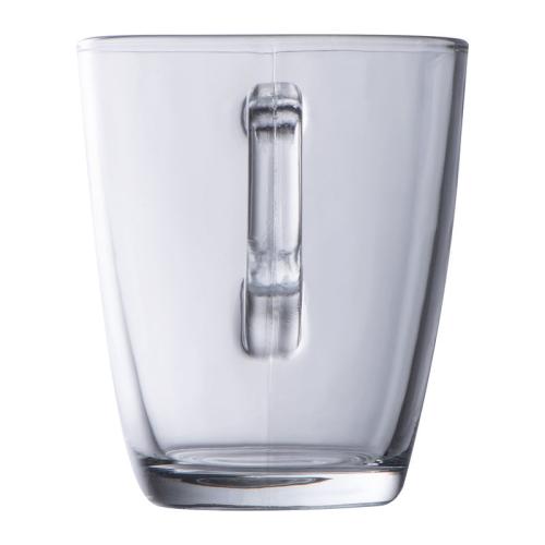 Glass cup with 320ml filling capacity and extra sturdy handle.