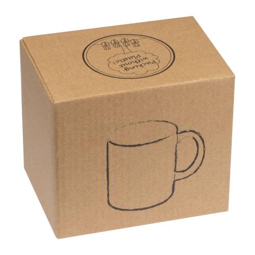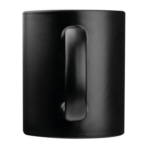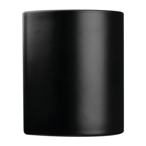 Ceramic cup with black outer surface and coloured inside, with a 300 ml filling capacity.
