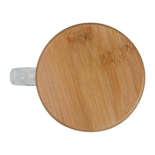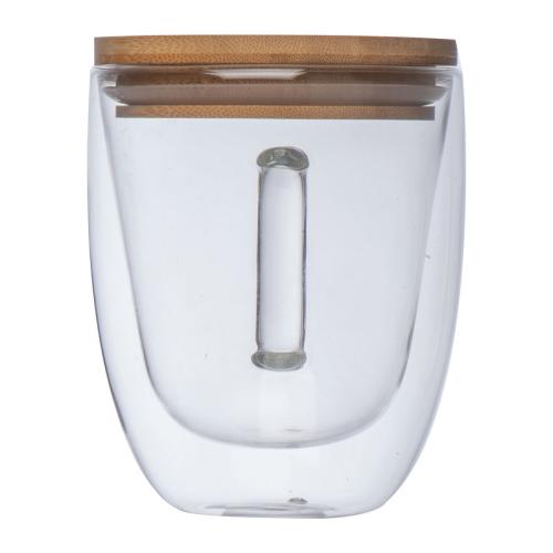 Double-walled glass with handle, 350 ml filling capacity and lockable bamboo lid.