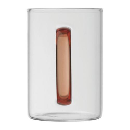 Glass mug with coloured handle and a capacity of 250 ml.