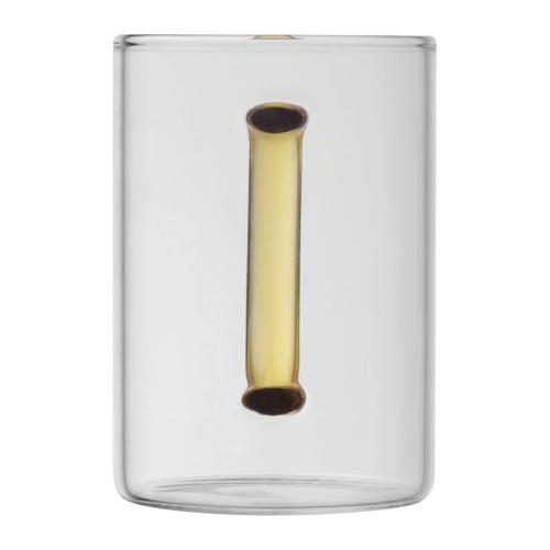 Glass mug with coloured handle and a capacity of 250 ml.