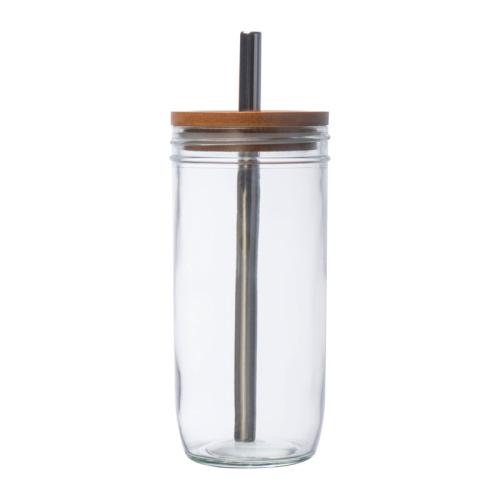 Glass mug with bamboo lid, stainless steel straw and a capacity of 650ml. Ideal for coffee, bubble tea and much more.