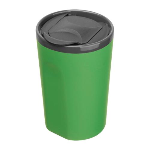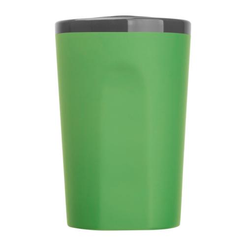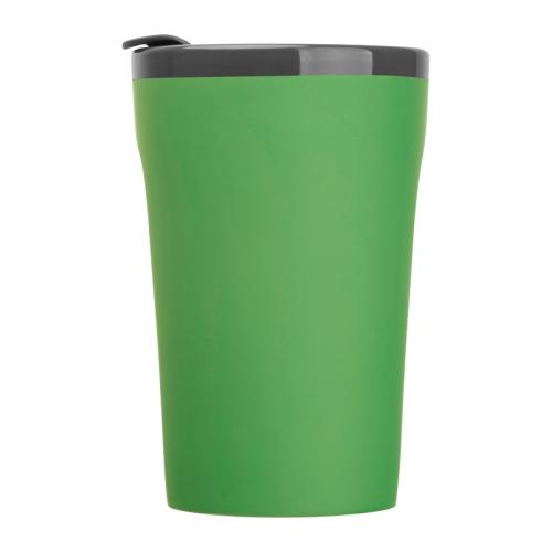 Rubberized travel ceramic cup with 400ml capacity and sliding lid.