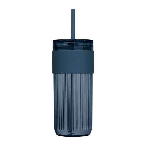Plastic drinking cup with straw, reinforced grip zone, and 660ml capacity.