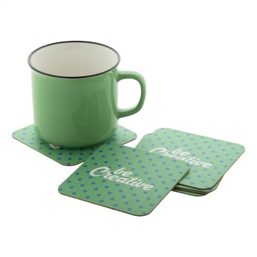 Custom made, absorbent paper coaster with custom graphics on one side. MOQ: 250 pcs.