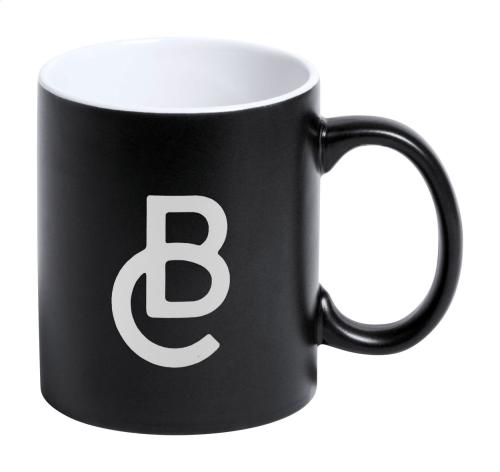 Coloured ceramic mug with white inside, 350 ml. With special coating for engraving, the engraved logo is matching the inside colour. In gift box.