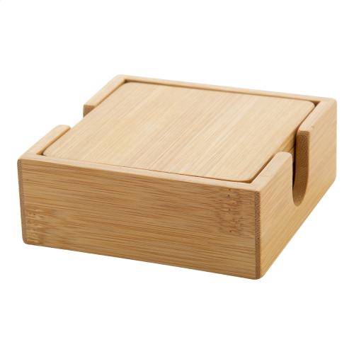 4 pc bamboo coaster set with desk holder.